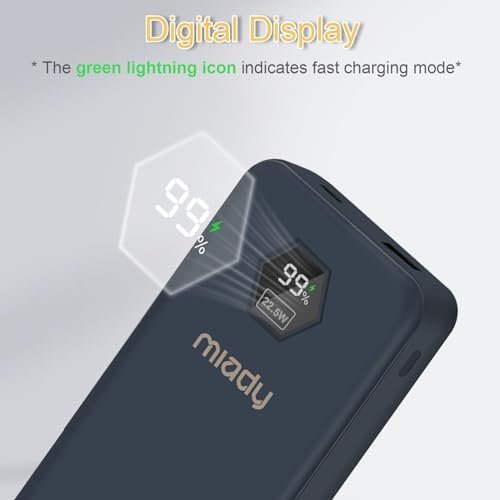 Miady Portable Charger, Slim 10000mAh Travel Battery Pack with LED Display PD 22…
