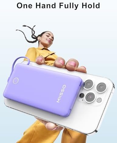 miisso 10000mAh Slim Portable Charger with Built in Cable, Power Bank Travel Cha…