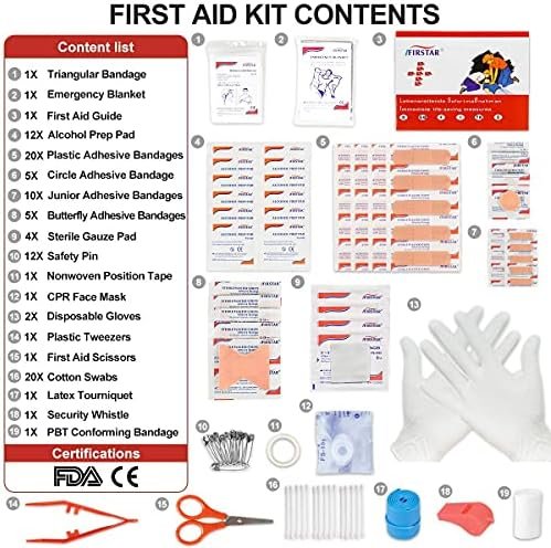 【Compact and Lightweight】Our first aid kit is designed to be portable and easy to carry, weighing only 230g (0.5 pound) and measuring 7.8″ x 5.5″ x 1.5″. It’s perfect for use at home, work, school, college, and on the go, including road trips, backpacking, fishing, hunting, boating, and more.