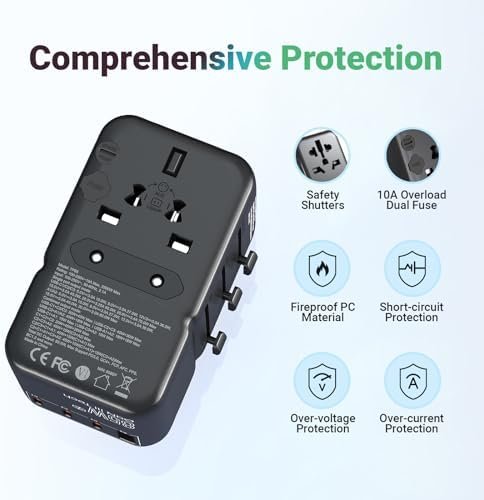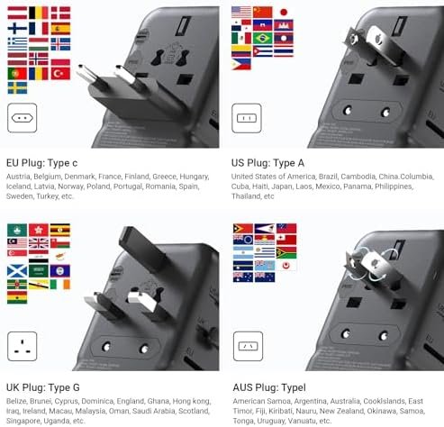 【WORLDWIDE ADAPTER】- Our all-in-one adapter includes 4 different plugs that cover over 150 countries, such as USA, Canada, Japan, UK, Ireland, Scotland, France, Germany, Italy, Spain, China, Australia, Argentina, New Zealand, etc. (excluding South Africa, India). It should be an ideal solution for your worldwide traveling.
