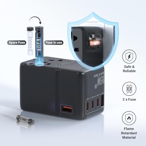 【SAFETY Protection】- Using two fuses in an adapter, or a double fuse design, provides an extra layer of safety and protection. Some safety regulations and standards require specific levels of protection for electrical devices. A dual-fuse design can help meet or exceed these safety requirements, making the adapter more reliable and compliant.