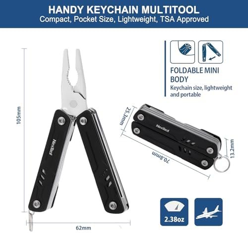 TSA friendly: Bladeless, this keychain multitool can get through TSA, is your flight-friendly companion.Keychain Ready: Equipped with a keyring, whether it’s hanging the key, backpack, or various places, it will be easy to operate! Great for daily tasks.9 Tools: Mini Sailor Pliers Lite includes pliers, scissors, screwdrivers and extractor, ton of utility in a tiny and light package.30Cr13 stainless steel ensure the stable performance and durability, suitable for high-strength work