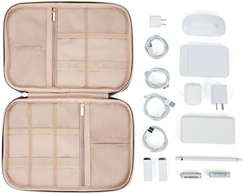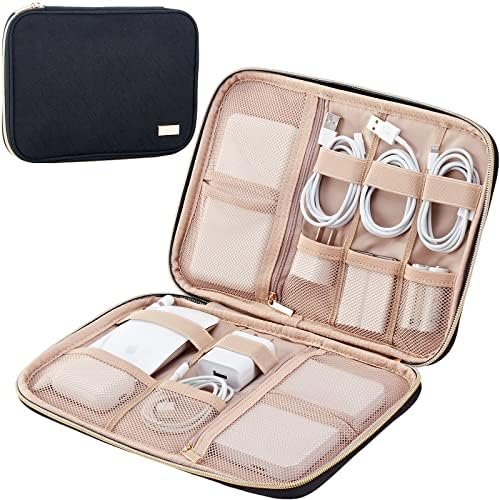 LARGE CAPACITY-10.5×7.5×1.5inches(L×W×H); Spacious room for 4 cables, 1 mouse, 2 power bank(or potable hard drives, cables), 2 SD cards, 3 batteries, 2 USB drives and 1 charger.