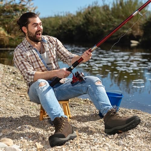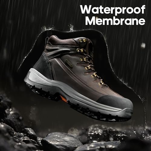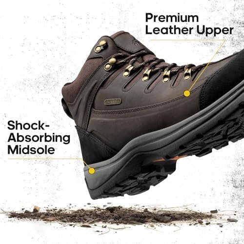 NORTIV 8 Men’s Leather Waterproof Hiking Boots Mid Ankle Trekking Mountaineering…