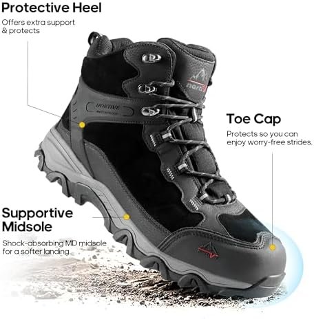 NORTIV 8 Men’s Waterproof Hiking Boots Outdoor Mid Trekking Backpacking Mountain…