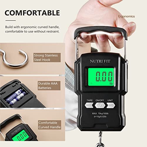 NUTRI FIT Luggage Weight Scale Fish Weighing Scales Digital Handheld Suitcase We…