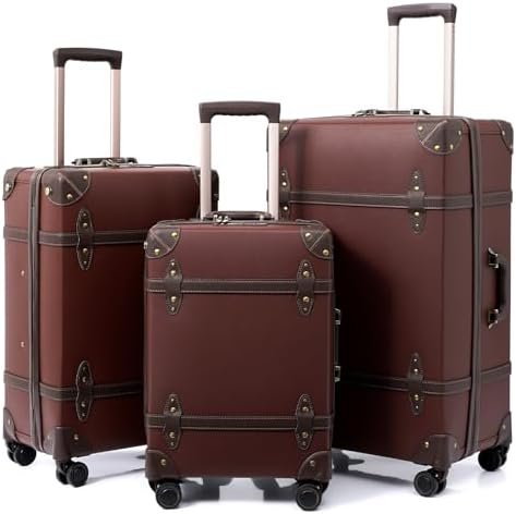 NZBZ Vintage Luggage Sets for Women Retro Suitcase Vintage Trunk Luggage 3 Piece…