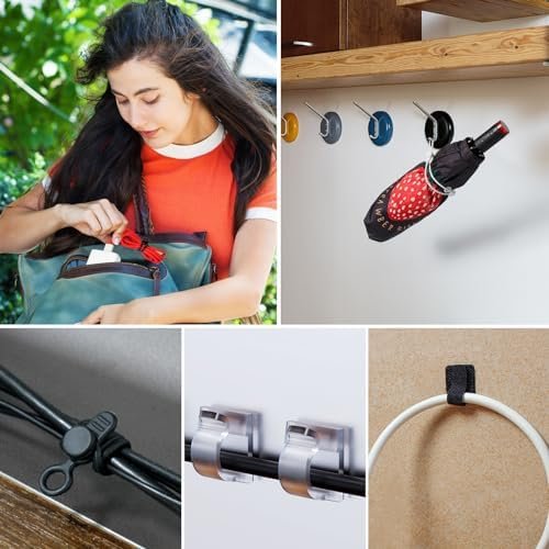This great value product combination set includes silicone cable ties, adhesive cable clips, and adhesive cable ties, all three types of cable management accessories. They are suitable for use in different scenarios, such as earphone cables in bags, charging cables in suitcases, or cables under computer desks, which are essential for daily life and travel.
