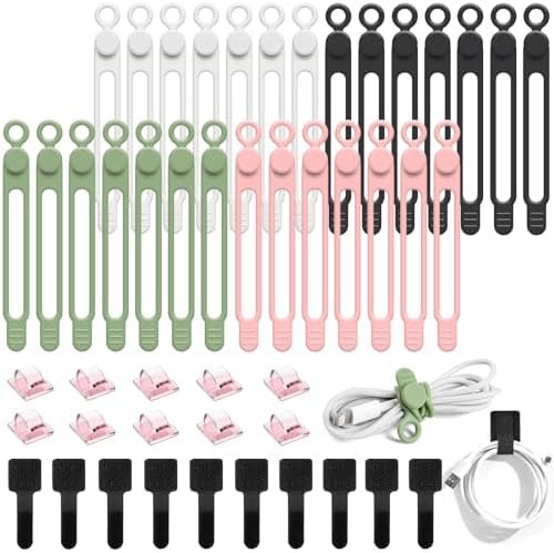 OneLeaf 48Pcs Silicone Cable Ties Reusable, Elastic Silicone Cord Ties for Cable…