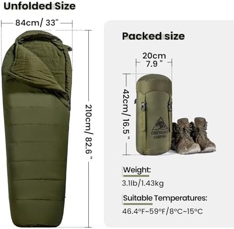 OneTigris Bushcrafter’s Sleeping Bags, Mummy Sleeping Bag for Camping Hiking Bac…