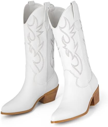 Ouepiano Cowboy Boots for Women Knee High Wide Calf Cowgirl Boots Embroidered Ch…