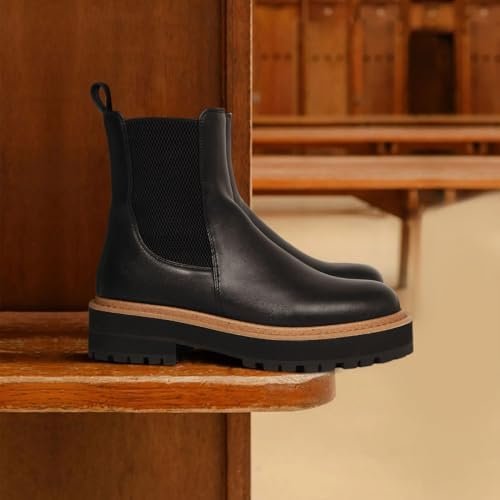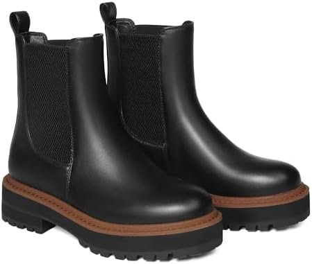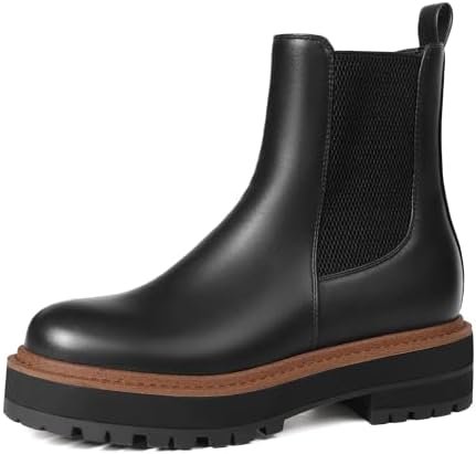 Ouepiano Women’s Chelsea Platform Ankle Boots Chunky Heel Slip on Elastic Lug So…