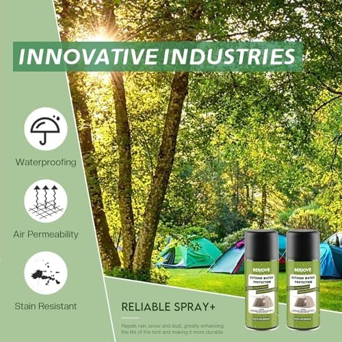 VERSATILE WATERPROOFING SPRAY: BERIOVE waterproof tent spray is great for use on outdoor fabrics including patio furniture, outdoor gear, tents, umbrellas, packs, couchs, carpets and upholstery. You will have a comfortable camping experience.