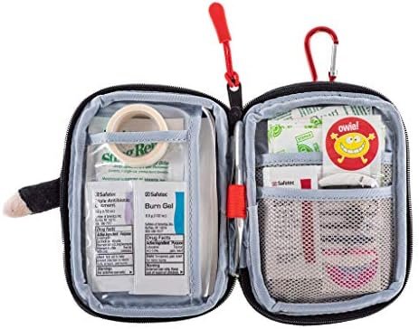SMALL AND COMPACT: This compact emergency kit is packed with all the supplies you need in case of small injuries (bandages, gauze pads, triple antibiotic ointment, burn cream, sting relief, Hydrocortisone pads and stickers to bring your child’s smiles back.) We’ve got your back from cuts, burns or scrapes.