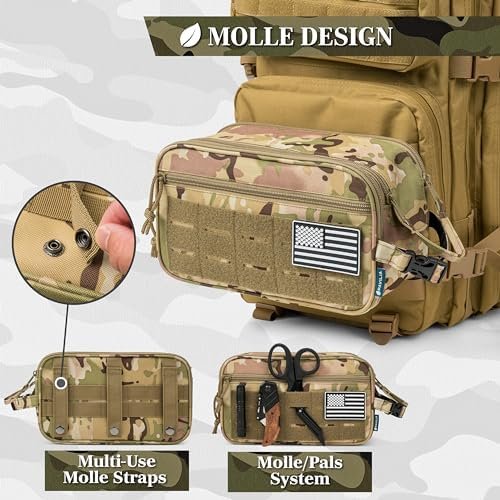 TACTICAL TOILETRY BAG FOR MEN: Measures 11 x 4.5 x 6 inches (L x W x H), this military travel hygiene dopp kit with MOLLE design has a large compartment and pockets to hold all your essentials. Equipped with elastic bands and additional mesh pockets to keep your hygiene items secured, this cosmetic make up case will help you stay organized whether at home or traveling. This small travel organizer is designed to be easy to carry, and compact to pack and fit well in luggage and backpacks.