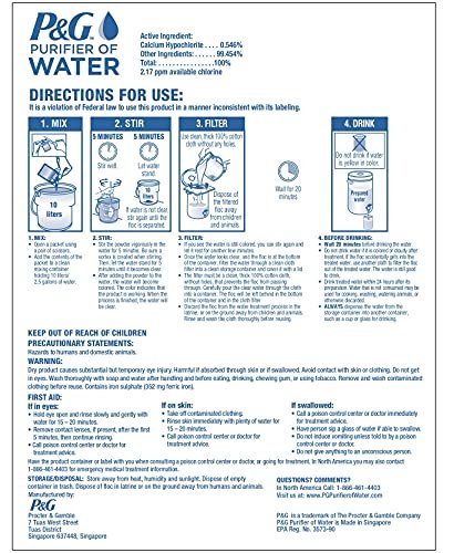 P&G Purifier of Water Portable Water Purifier Packets. Emergency Water Filter Pu…