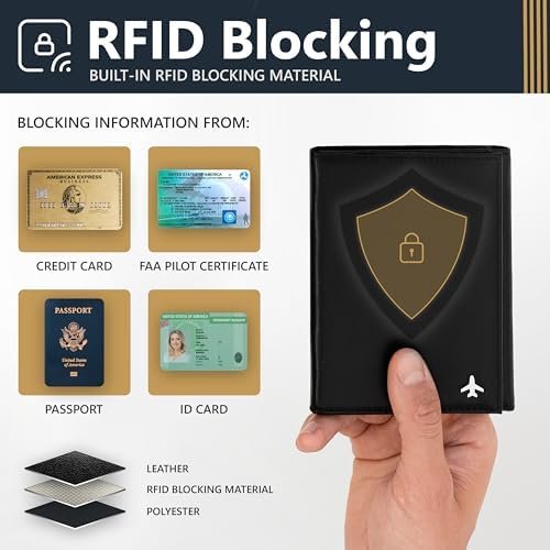 Pilot document holder, Pilot wallet, RFID-Blocking, Travel Wallet for Aviation P…
