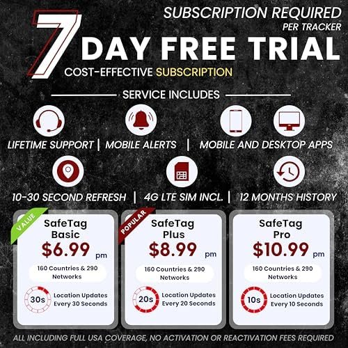 ✅ Cost Effective Tracking – SUBSCRIPTION REQUIRED PER TRACKER- Tracking from as low $6.99/month with a 30 second location refresh rate subscription and $10.99 when you subscribe monthly for a 10 second refresh rate, SIM & Data included, no other hidden costs. No activation or cancellation fees. 12 Month Warranty.
