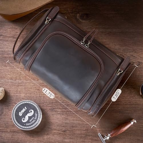 Polare Full Grain Leather Toiletry Bag Travel Dopp Kit Makeup Cosmetic Organizer…