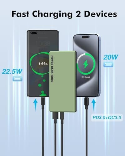 Portable Charger 10000mAh Power Bank for iPhone 20W PD Fast Charging External Sl…