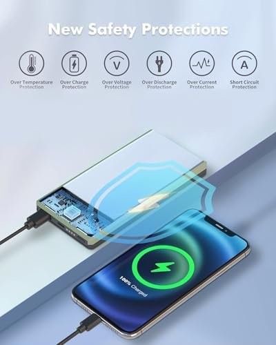 SAFE & PASS THROUGH CHARGER: Portable iphone charger power bank supply features comprehensive protection functions including temperature control, overcharging, short circuit protection and more to ensure the safety of your devices, which effectively avoid device gets hot and fault of the portable battery.