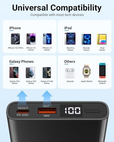 Portable Charger LED Display Power Bank 15000mAh USB C PD 20W Fast Charging Exte…
