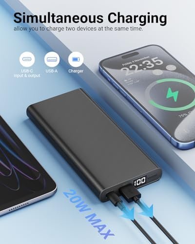 PD 20W Power Delivery: Portable charger with Type-C Output/Input ports ,which can fast charge 2 devices at the same time. You can share it with your companions to meet the charging needs of mobile phones, tablets and other electronic devices