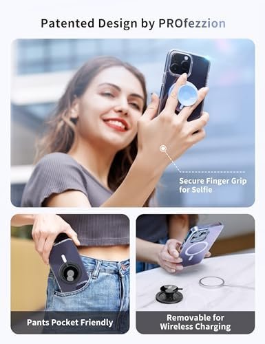 Removable for wireless phone charging and directly compatible with magnetic MagSafe car mount and MagSafe phone grip