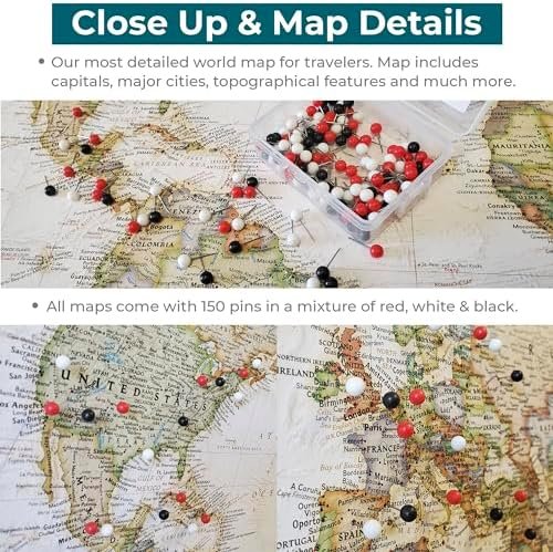 Ready to Hang and Pin: The map arrives ready to hang and includes 150 pins, perfect for tracking every memorable location you’ve visited and planning those bucket list trips!