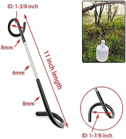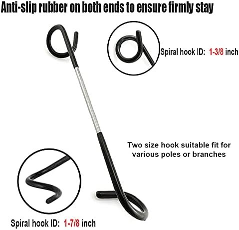 🏕️Size & Package:11 inch length x 6mm thickness. Two size spiral hook ID: 1-3/8 inch, 1-7/8 inch. Package: 2pcs camping light hook hanger black color.
