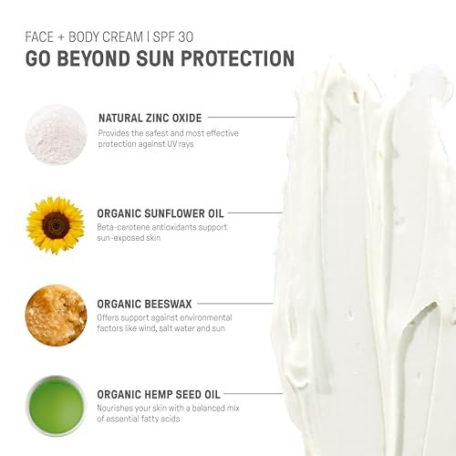Eco-Friendly Protection: Our SPF 30 Face + Body Lotion, formulated with zinc oxide, is an organic, natural sunscreen without chemicals, ensuring reef-safe protection while being non-toxic to the environment