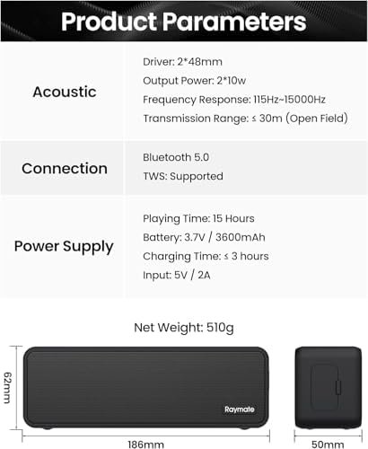 Raymate Bluetooth Speakers, 20W IPX7 Waterproof Speaker Wireless Bluetooth-V5.0,…