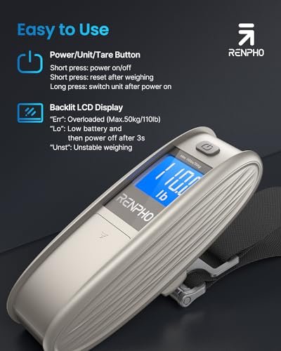 RENPHO Luggage Scale, Portable Digital Suitcase Weighing Scale for Travel Essent…