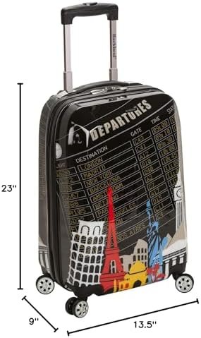 This carry on is made of polycarbonate/ABS. This material is extremely lightweight, durable, and protects the contents of your luggage. Multi-directional double spinner wheels rotate 360 degrees for easy maneuverability. This luggage allows you to pack more while avoiding the excess weight surcharges imposed by most airlines. Multi-directional spinner wheels for easy maneuverability Modern internal chrome telescoping handle with push button handle. Interior mesh and zip pocket and elastic pocket * 3 year * 22″x13. 5″x9. 5″ (with wheels) weighs 6. 5 lbs