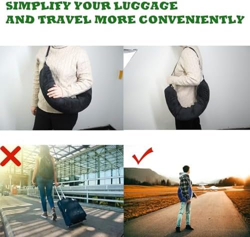 【Versatile Usage】Suitable for travel, business trips, hiking, camping, and more. No need for extra filling, simply stuff with soft clothes and zip up for instant comfort. Compact in size, it can be used alone or easily fit into your carry-on or backpack without taking up much space.