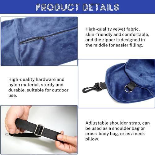 【Adjustable Shoulder Straps】Our travel pillow cover features high-quality hardware and adjustable shoulder straps. Can be worn as a crossbody bag, shoulder bag, neck pillow, pillow, seat cushion, and more. Perfect for on-the-go comfort and convenience. Great for travel neck pillow storage and organization.