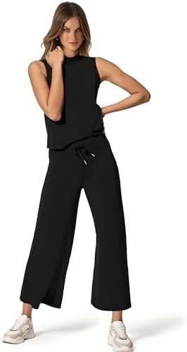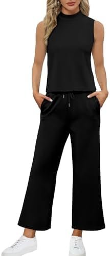 SAMPEEL Two Piece Sets for Women Summer Outfits Lounge Sets Mock Neck Tops Wide …