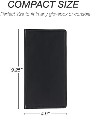 This vehicle registration and insurance organizer protector features a heat-sealed leather-like vinyl cover with decorative perimeter stitch for a clean look. It has a compact size of 9.25” × 4.9” that allows you to keep it safely in the glove box of your car or truck