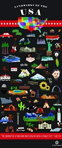 BRIGHT COLORS, KID AND FAMILY FRIENDLY: This map of the united States provides a great mix of fun, learning, travel, landmarks, Capital cities in beautiful bright colors.