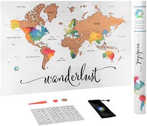 🎁 GIVE THE ONE OF A KIND GIFT THEY’LL NEVER FORGET! Picture the smile on your loved one’s face when you hand them this beautiful and unique travel gift! This map comes packaged in a beautiful tube perfect for gifting to your travel loving friends! This map includes these accessories: guitar pick, scratch pen, memory stickers and push pins. Check out our matching United States Wanderlust scratch off map here on Amazon, purchase both to create a gift set!
