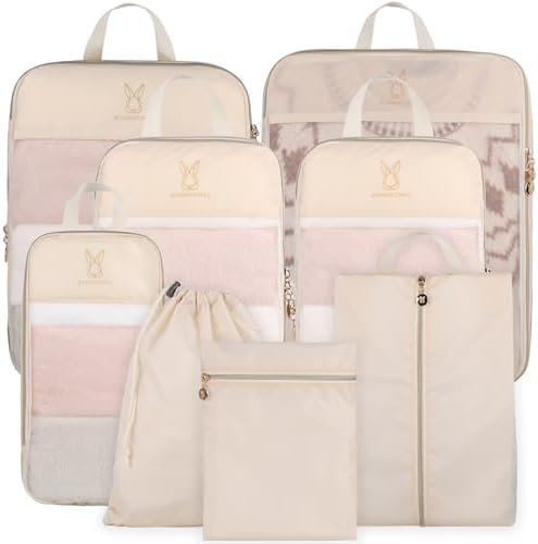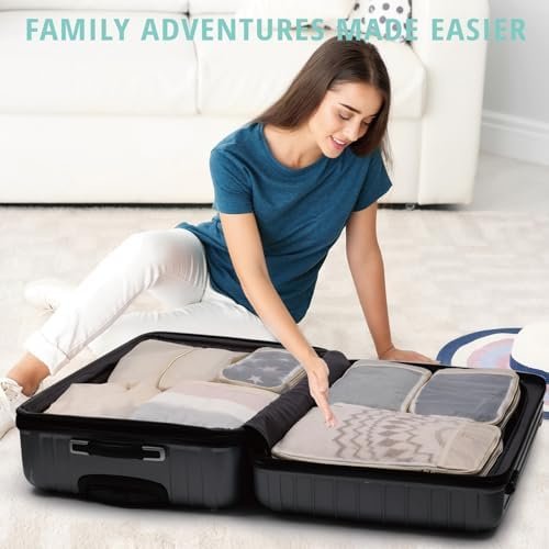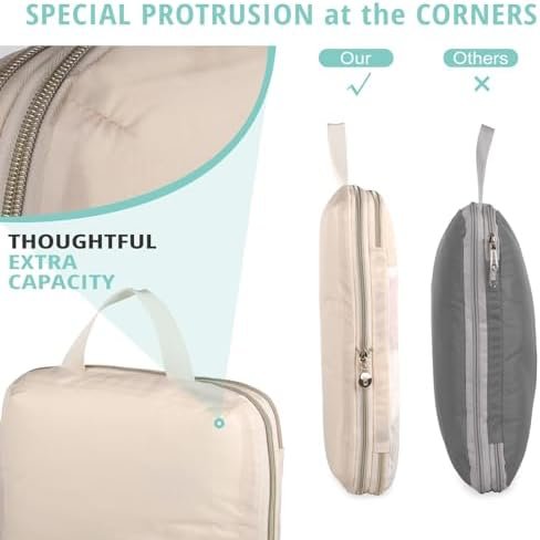 【Upgrade Your Travel Experience: Save up to 60% More Space】Revolutionize your packing game with our latest iteration featuring innovative V-shaped stripes, a game-changer for packing cubes. Our cubes boast special corner protrusions, granting you an additional 20% room to play with. With double zippers and a compression zipper system, our cubes offer the perfect blend of storage and space-saving capabilities. Say goodbye to overstuffed suitcases and hello to efficient packing!