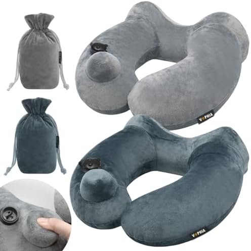Self-Inflatable Neck Travel Pillow with Compact Bag and Washable Cover for Sleep…