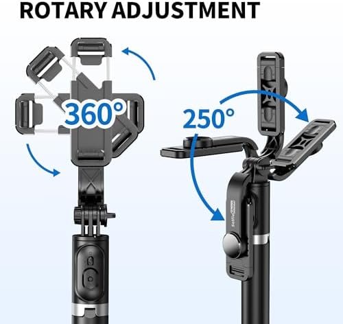 【Adjustable Angle & Rotatable Phone Holder】360° rotatable phone holder and 235° rotation head allow you to find your best photo angle freely by simply rotating the angle. The camera angle is wider and the composition is more diversified. Suitable for family gatherings and friends reunions, trips, hiking, travel, camping, sports activities such as snowboarding, skiing and surfing, snorkeling. No matter indoor or outdoor activities.