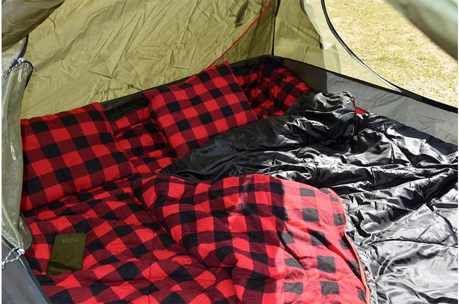 And More: In addition to using it as a double sleeping bag, you can open the zippers on both sides of the bag completely so you get a large flannel blanket. Or drape it over your body as an oversized coat to keep you warm while working in cold weather.