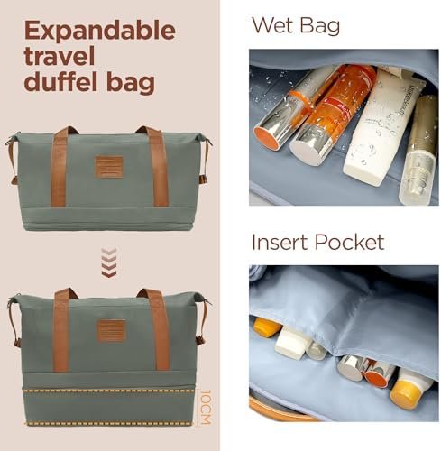 Multi-functional travel bag: The Expandable Weekend Duffel Bag and Toiletry Bag is made from polyester fabric and is lightly waterproof. Designed with a pocket sleeve that attaches to the luggage handle, this weekend bag frees up your hands while providing quick access to your belongings.