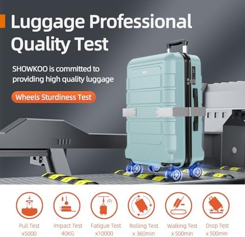 Silent & Smooth Multi-directional Spinner Wheels: Benefit from brand new soft TPU and lubricating balls inside wheels, luggage moves very silent and smoothly with 360° rotate double wheels. Luggage passed 100% perfect drop test. Luggage also passed the walking test ( A professional luggage quality test: Luggage can loads 15kg and walks 40km at a speed of 10km/h ). Best choice for long-term travels and business trips.