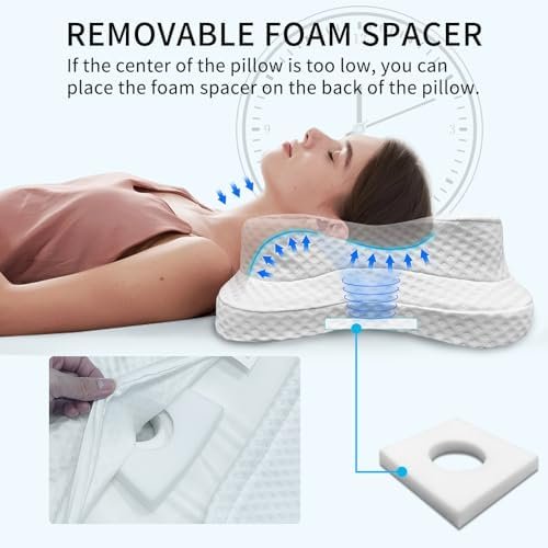 【Removable Foam Piece】Some individuals may not immediately adapt to the neck support when they start using the pillow. By adding this detachable foam piece at the bottom of the pillow to elevate the center, it can help alleviate strain on the neck. After gradually adapting and experiencing improvement, it can be slowly removed.