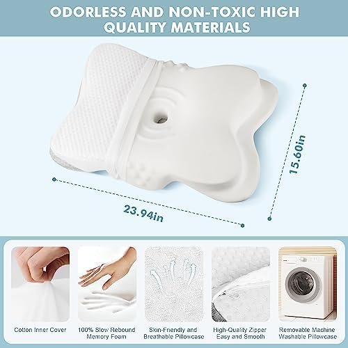【Healthy and Safe】Our memory foam pillow has a high-quality, odorless core for healthy sleep. The foam is imported from Germany, made with the best MDI material for optimal results. The production process is safe. Our goal is to create the ultimate sleeping experience. The neck pillow comes with a double-layer breathable and removable pillowcase, machine washable. The material is soft, breathable, and keeps you comfortable all night