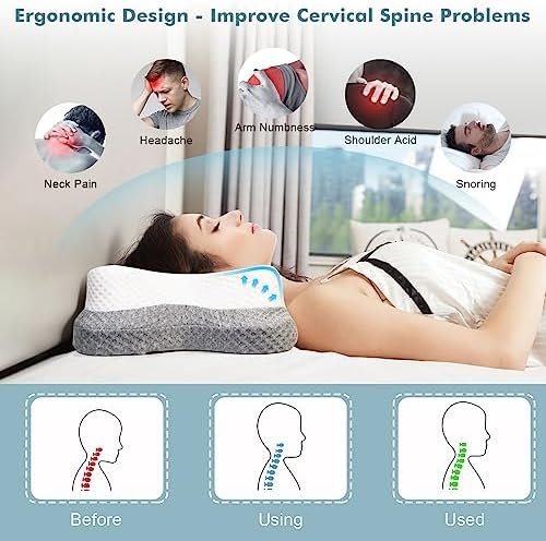 【The Partner of Sweet Dreams】Are you struggling with insomnia all night long? Do you wake up with neck cramps or back pain? Our ergonomically designed memory foam pillow has been proven to provide optimal support for your head, neck, shoulders, back and arms. The cervical neck pillow’s unique contoured shape naturally conforms to your curved spine, promoting proper spinal alignment. You’ll be able to comfortably shift positions throughout the night, allowing you to wake up feeling refreshed.
