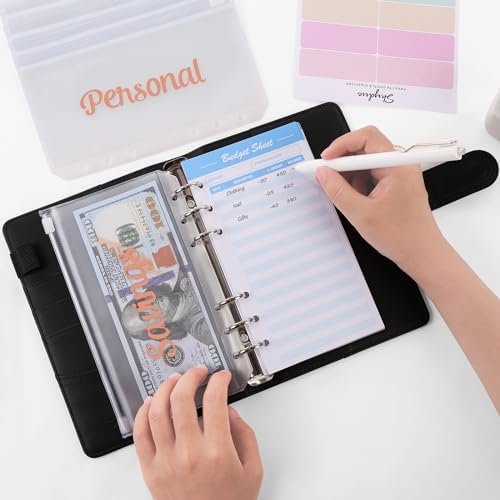 SKYDUE A6 Budget Binder with Cash Envelopes, Money Saving Binder includes Expens…